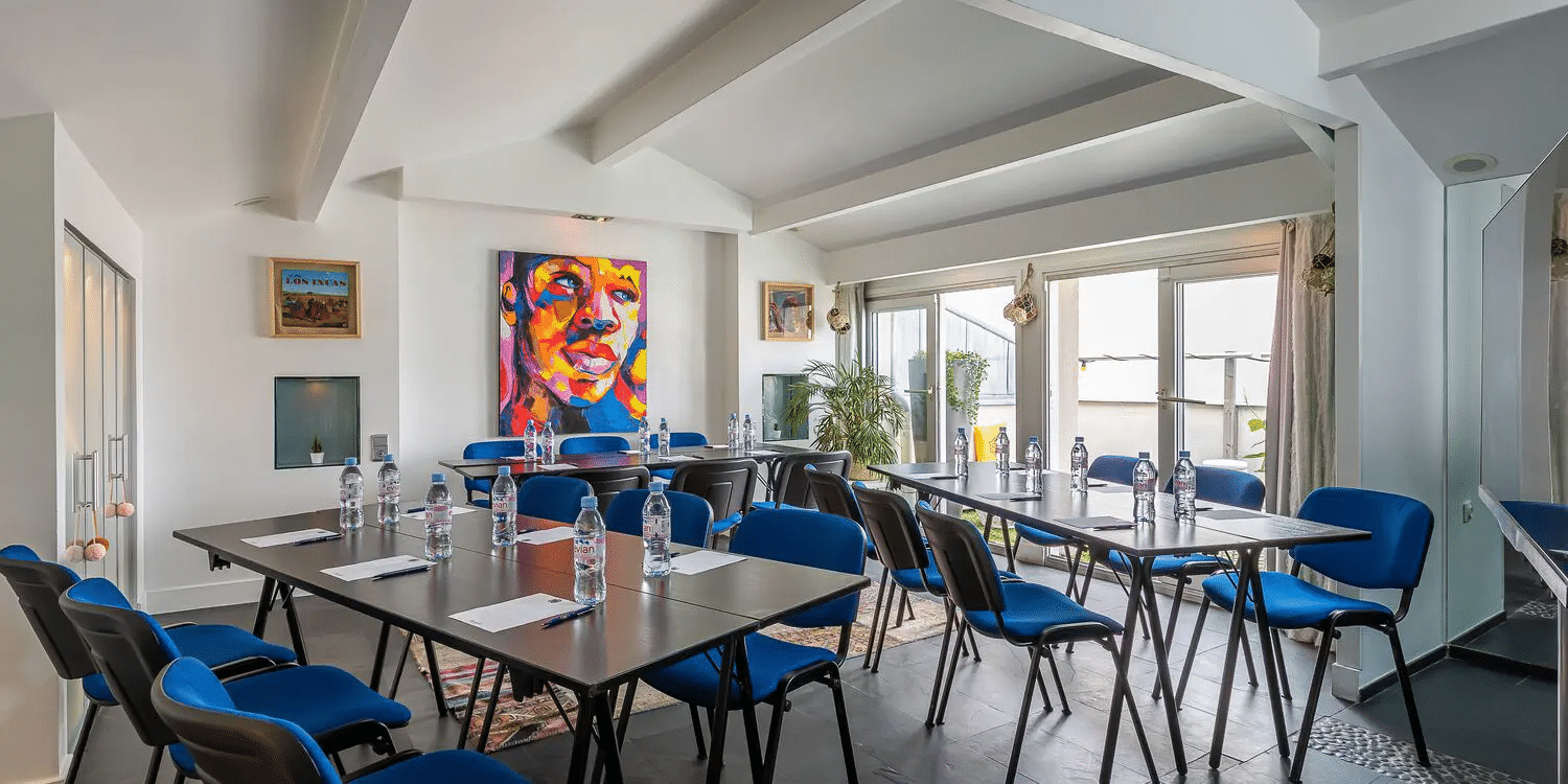 Vous pouvez profiter et privatiser ce rooftop de 75m² agencé sous forme de duplex pour des évènements professionnels tel qu’un séminaire ou une réunion. L’intérieur de ce rooftop est superbement décoré, et les deux espaces extérieurs suffisent à succomber : une magnifique piscine chauffée d’un côté, et une terrasse rooftop de l’autre sur laquelle vous pourrez vous détendre et profiter de la vue sur Paris.