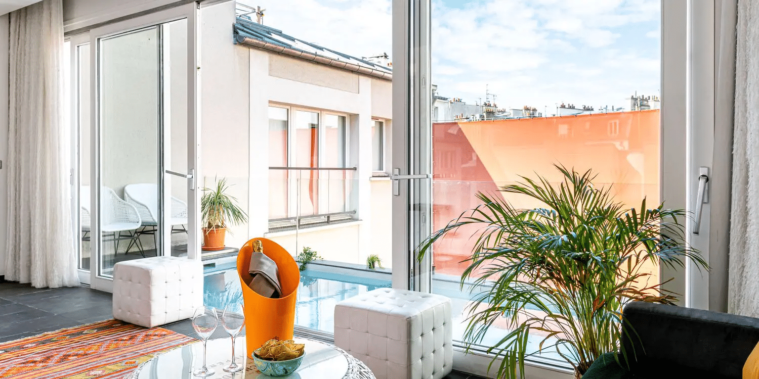 La Suite Piscine, du superbe Hôtel 1K, est un espace atypique et très moderne, unique dans la capitale. Ce rooftop privatisable à Paris est niché au cœur du 3ème arrondissement de Paris, à deux pas de la place de la République.